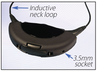 can be used with a neckloop by hearing aid wearers or with the stethoscope style headset for non hearing aid users