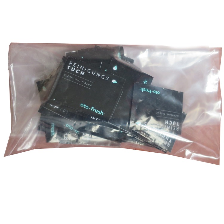 Designed for cleaning earmoulds and hearing aids, the tissues are supplied in a sealed pouch which prevents them drying out while in storage.