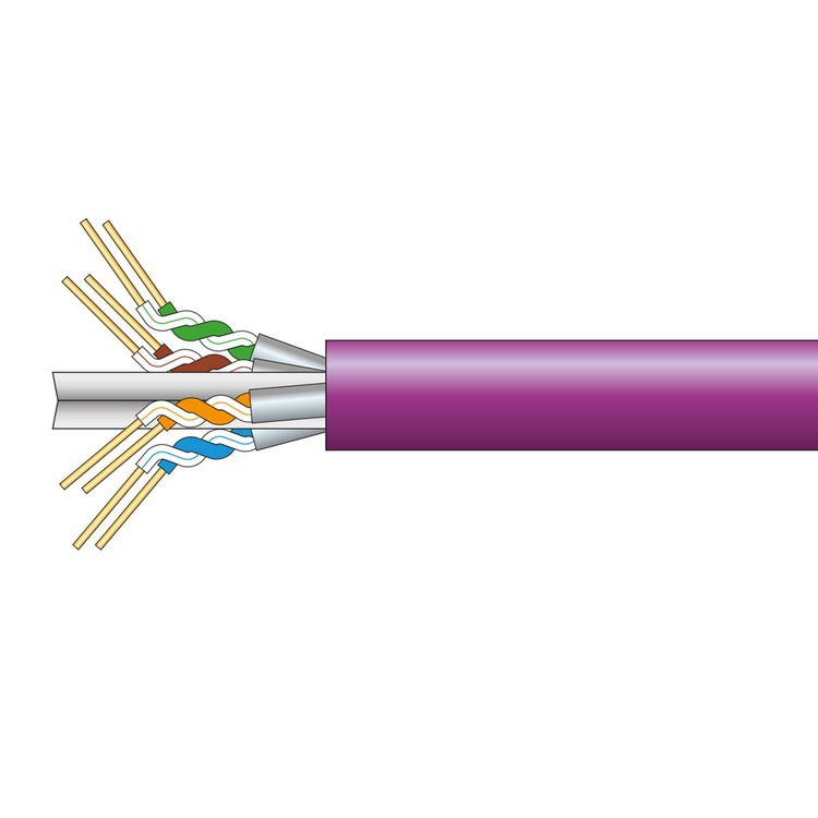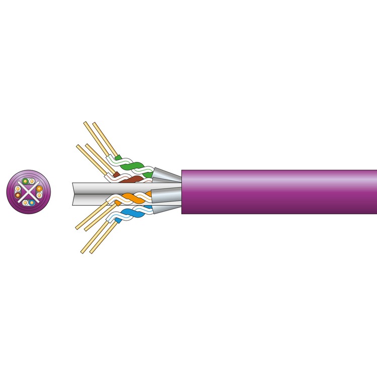 Cat6a oxygen free copper twisted pair data cable with low smoke zero halogen sheath and individual pair aluminium foil screen. Supplied on a wooden drum reel and marked at 1 metre intervals. This cable is designed for high speed data transmission such as Gigabit Ethernet applications.