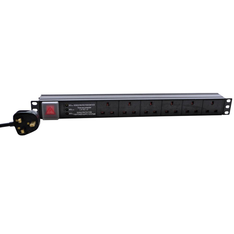 6 Way UK Socket Horizontal PDU. Comes with a 1U 19 inch Aluminum...