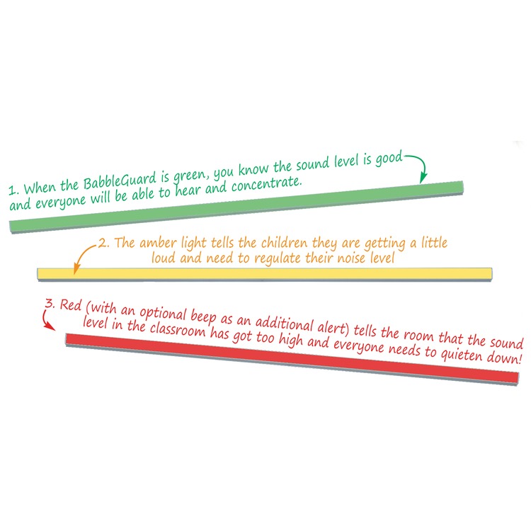 The BabbleGuard can be used by teachers as part of general classroom discipline to encourage children to self-regulate their noise level. Good classroom acoustics are crucial for a pupil's ability to hear, listen and learn.