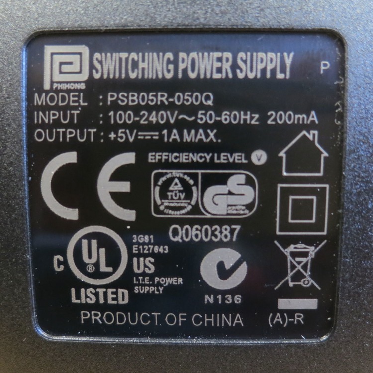 UK Plug low leakage, low noise, USB power supply perfect for audio devices - 5 Watt 5V DC 1 amp o/p. 100-240V 50-60Hz 200mA AC input.