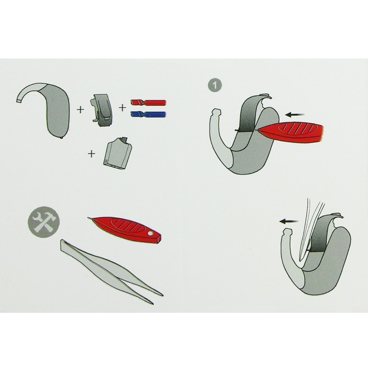 This shoe attaches to the hearing aid by replacing the battery door - see illustration.