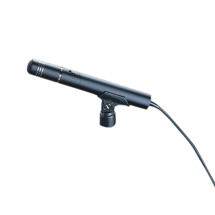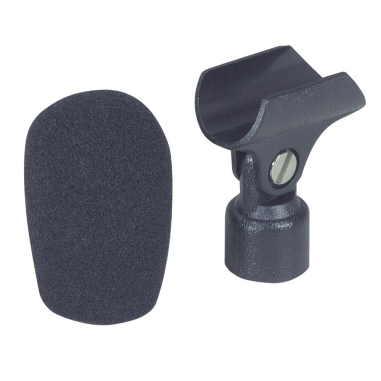 An all metal microphone finished in black and silver, complete with on/off switch, foam windshield and mic clip. It has an integral 6m lead to a 6.35mm jack plug and takes one 1.5V AA battery.