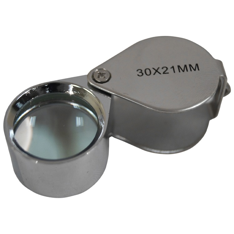 Eagle pocket magnifier featuring 10x magnification, chrome plated housing and swivelling anti scratch cover.
