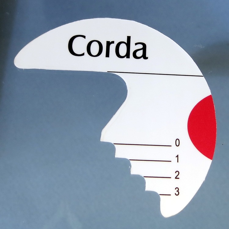 Oticon Corda hearing aid measurement tool - it's double sided,