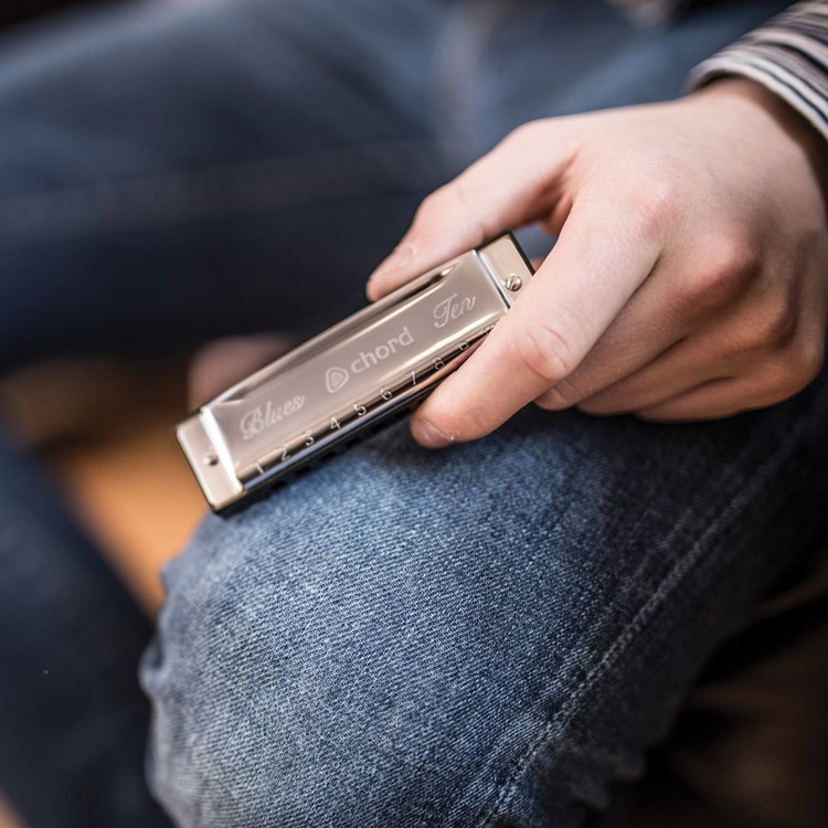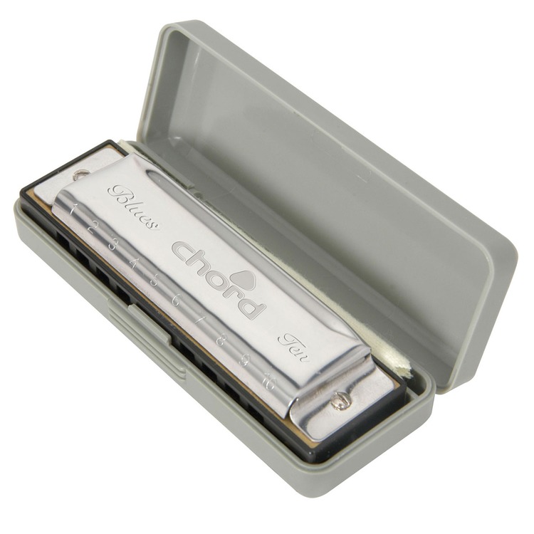 Blues Ten Harmonica E, 10-hole, 20-note diatonic harmonica with dual reed plates and pressed steel cover plates. Precision phosphor bronze reeds offer high accuracy and durability. Suitable for blues playing when key is selected a perfect fourth above the accompanying instruments.