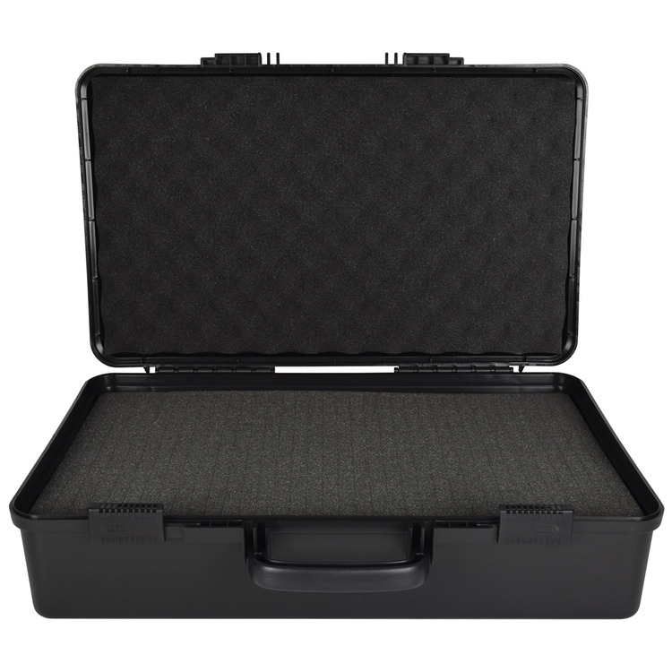 Integral carry handle and slide locking latches keep the case securely closed during transit.