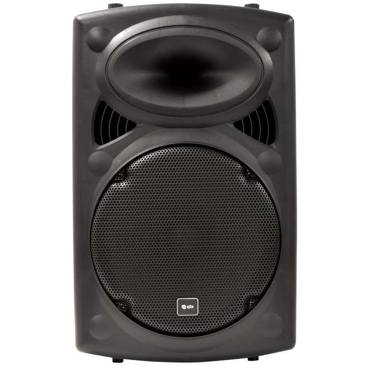 Compact portable PA unit based on the QR speaker cabinet. Built-in amplifier operating from mains or internal rechargeable battery powering a main driver and compression driven horn unit.