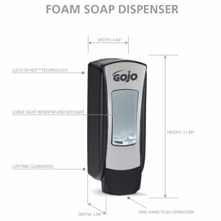 Manual dispenser in Chrome/Black for GOJO 1250ml foam soap
