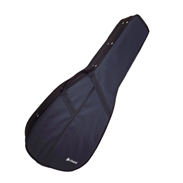 Lightweight solid foam guitar case with shaped interiors formed from solid expanded foam with a heavy duty zip opening.