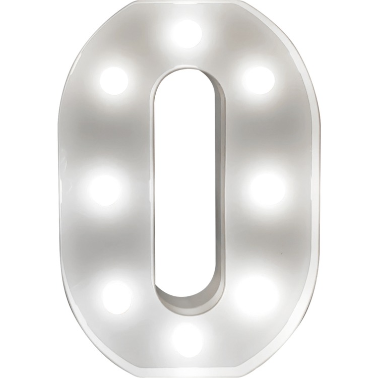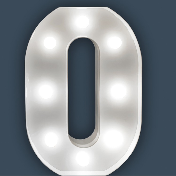 Battery Operated 3D LED Number '0' Marquee style light. Great for creating names, words, phrases or ages and years at birthday parties, weddings, anniversaries and other events. The neutral colour means they will easily fit with any aesthetic. They also look great as a feature in any home such as the lounge or bedroom.