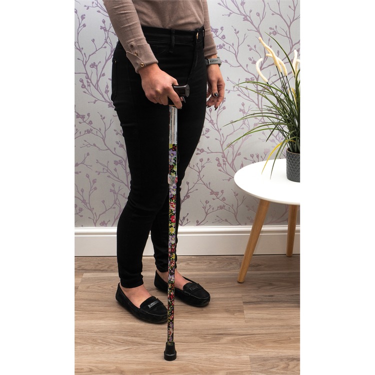 The Folding Walking Cane is a stylish and ergonomic walking cane with a sturdy yet lightweight powder coated aluminium tube body and rubber tip ferrule.