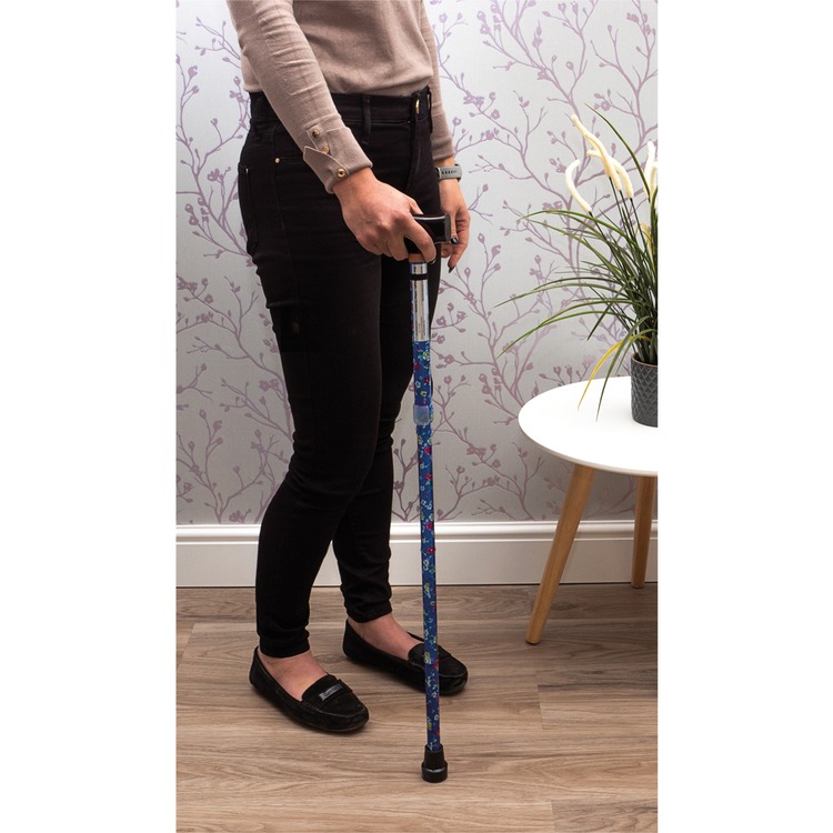 The Folding Walking Cane is a stylish and ergonomic walking cane with a sturdy yet lightweight powder coated aluminium tube body and a rubber tip ferrule.