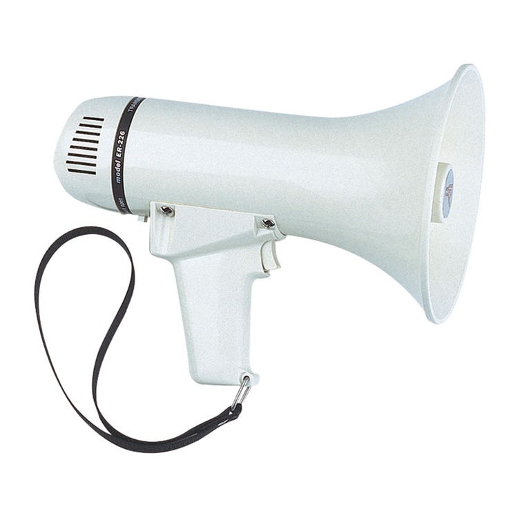 High output but very compact loudhailer for hand-held use. All in one ABS construction with volume control and wrist strap. Powered By 6x AA batteries (not supplied).