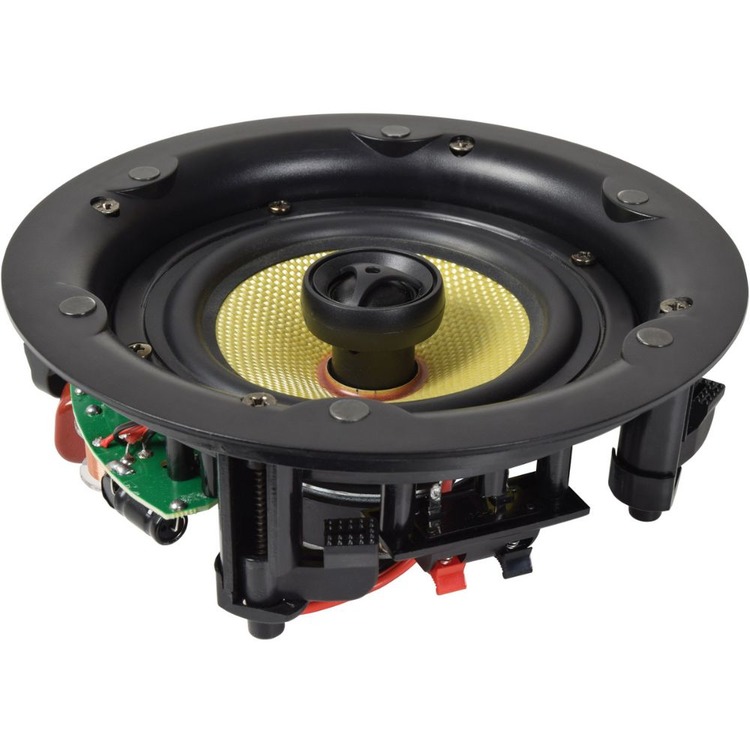 Premium quality ABS 2-way ceiling speakers with magnetic frameless grille for high quality music reproduction in a sleek design. High energy glass-aramid main drivers are combined with a coaxial dome tweeter and coupled to a wave guide baffle for optimum sound dispersion. Each KV speaker is served by a full 2-way passive crossover network, providing an accurate and efficient frequency balance. Designed without compromise to deliver maximum power and quality from this class of ceiling speaker.