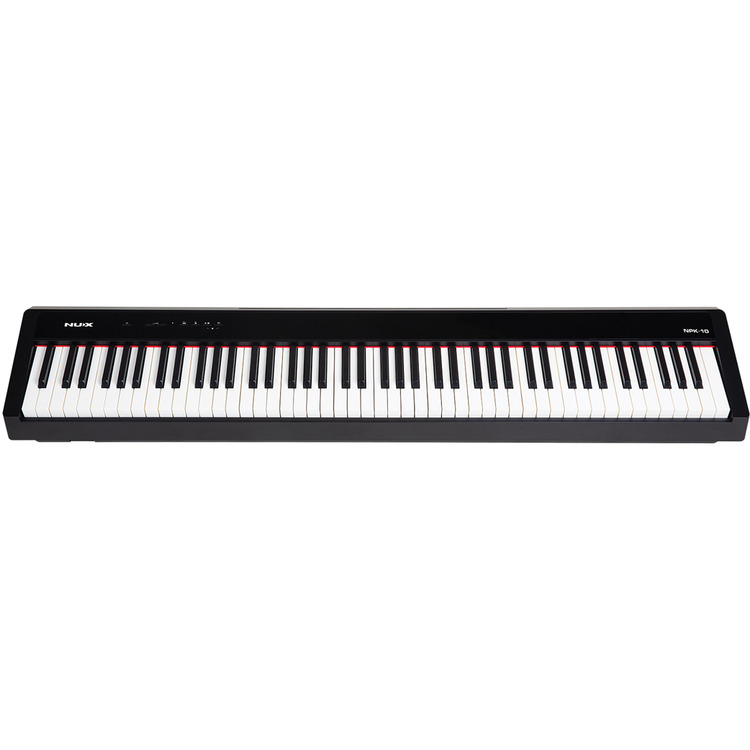 An inbuilt DSP section offers a selection of reverb, delay and chorus effects, which can be saved with sound settings in 2 user memory banks. Note keys double up as edit keys for all settings and functions, resulting in a clean and uncluttered control surface. An accompaniment section has a choice of 12 different drum patterns, which can be used along with a record-loop function for practice. In addition, the NPK-10 has 20 internal demo songs. USB connection to a computer sends and receives MIDI for recording and playback. MIDI and audio can also be wirelessly transmitted via Bluetooth®, which can also be used in conjunction with the "Piano Mate" app for self tuition and exercises.
