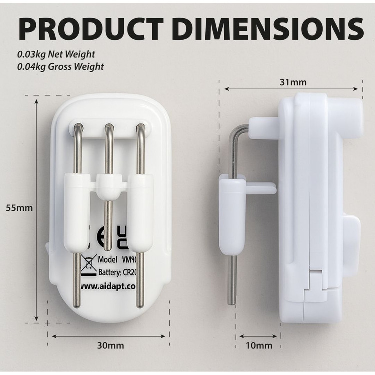 pre-assigned detection level. This product is powered by 1 x CR2032