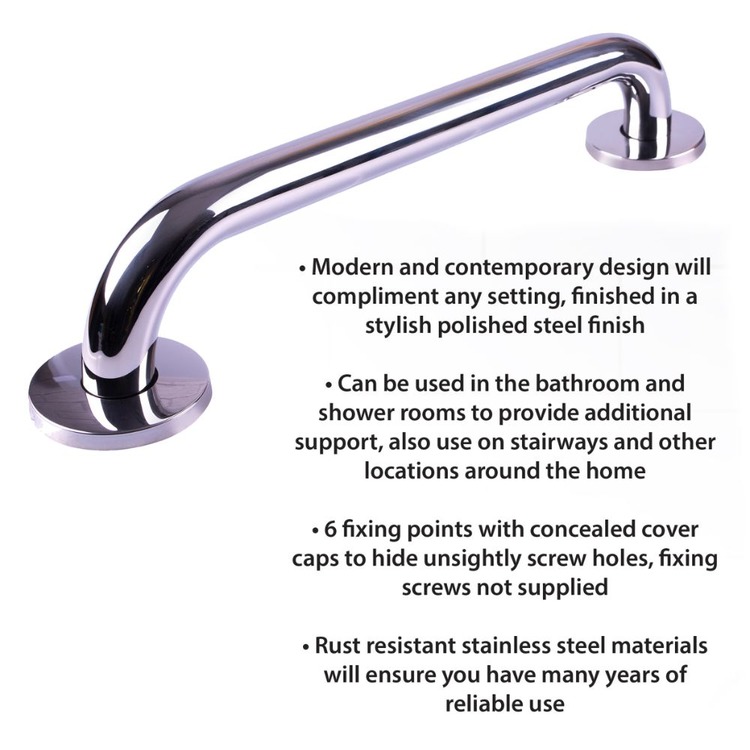 450mm Stainless Steel Polished Grab Bar ideal for use in and around the home, particularly bathrooms and showers for extra support and peace of mind.