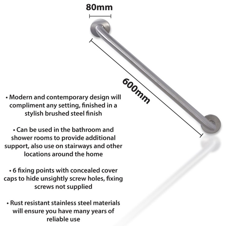 600mm Stainless Steel Chrome/Silver Grab Bar ideal for use in and around the home, particularly bathrooms and showers for extra support and peace of mind.