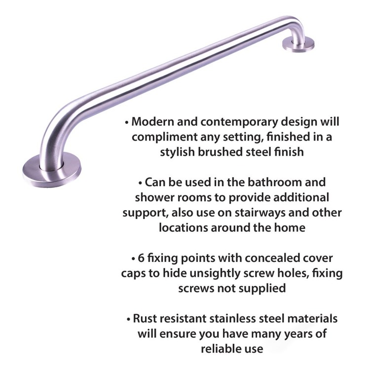 900mm Stainless Steel Chrome/Silver Grab Bar ideal for use in and around the home, particularly bathrooms and showers for extra support and peace of mind.