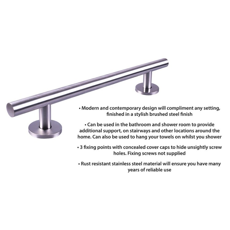 620mm Luxury Straight Stainless Steel Grab Bar in a Brushed Steel Finish ideal for extra support in the home for your daily routine