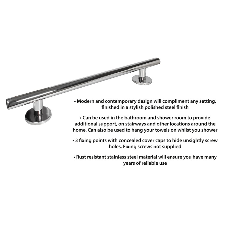 620mm Modern Style Stainless Steel Straight Grab Bar Polished Steel Finish ideal for additional support needed around the home