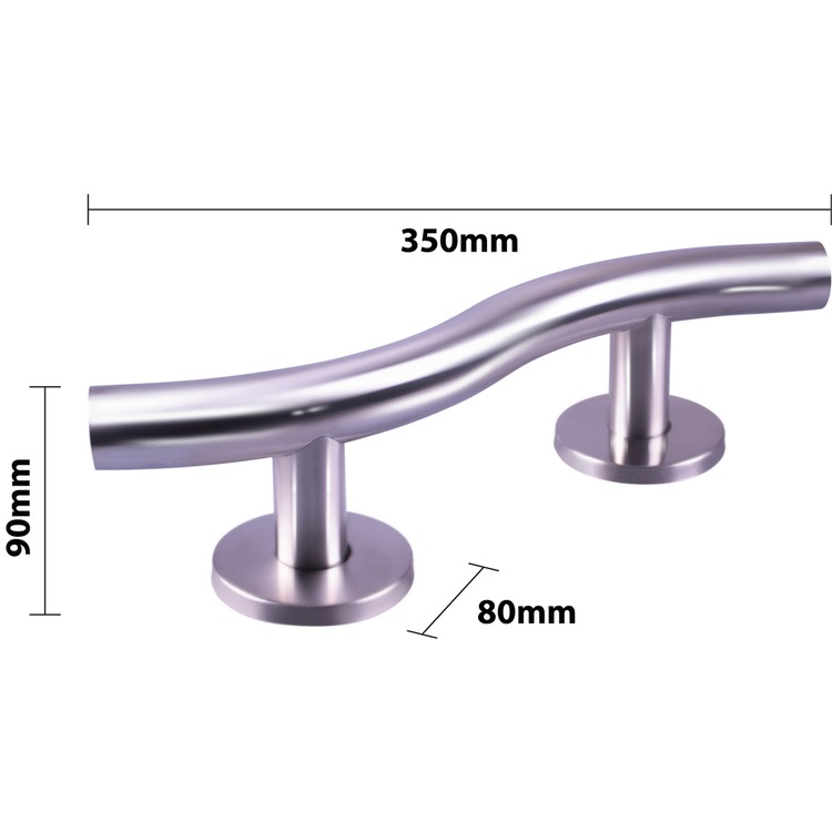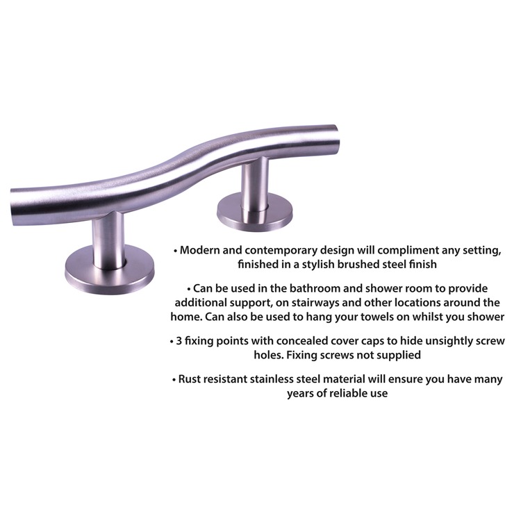355mm Luxury Curved Stainless Steel Straight Grab Bar with Polished Steel Finish ideal for use in showering and bathing areas or next to a toilet to provide additional support to users.