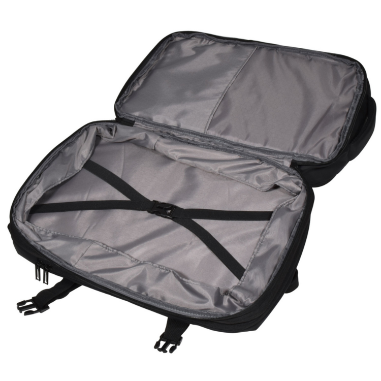 There are two straps on the back to wear comfortably as a backpack or there is also the option to use the carry handle on the side.