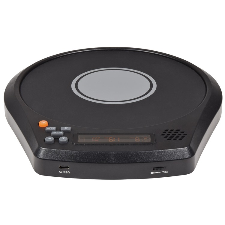 A built-in metronome produces audio prompts or spoken word beat counts through the integral speaker or via a headphone output. Each strike on the pad can be detected, which works with the internal modes to provide interactive rhythm training.