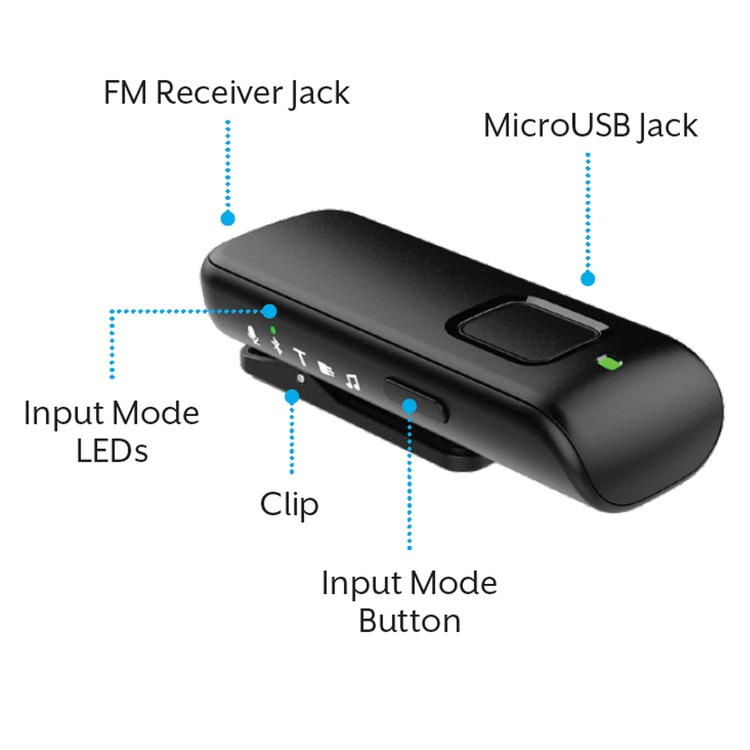 When worn by a distant speaker in noisy environments, the Remote Microphone+ functions as an assistive listening device.