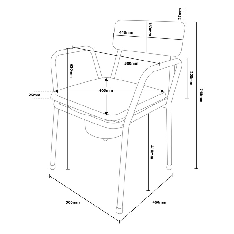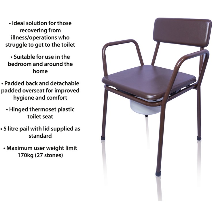 The Bedside Commode Chair is stackable; a neat and practical commode chair suitable for both domestic and commercial use. Ideal as a bedroom or bathroom commode. Particularly suited to use in a care home setting or in a property with only a downstairs WC.