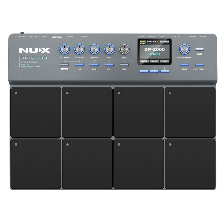 The DP-2000 is a digital percussion pad with 8 touch sensitive zones and a huge library of internal sounds. A USB-to-PC/Mac interface enables integration with a software recording suite as a trigger controller and sound source. Sounds from the flagship DM-8 kit are stored internally, along with additional world percussion instrument samples and the option to add user samples from a USB flash drive. Sounds are assignable to pads and adjusted using the intuitive user interface and control surface, and each pad has a dynamic indicator which varies in brightness to mirror the playing dynamics.