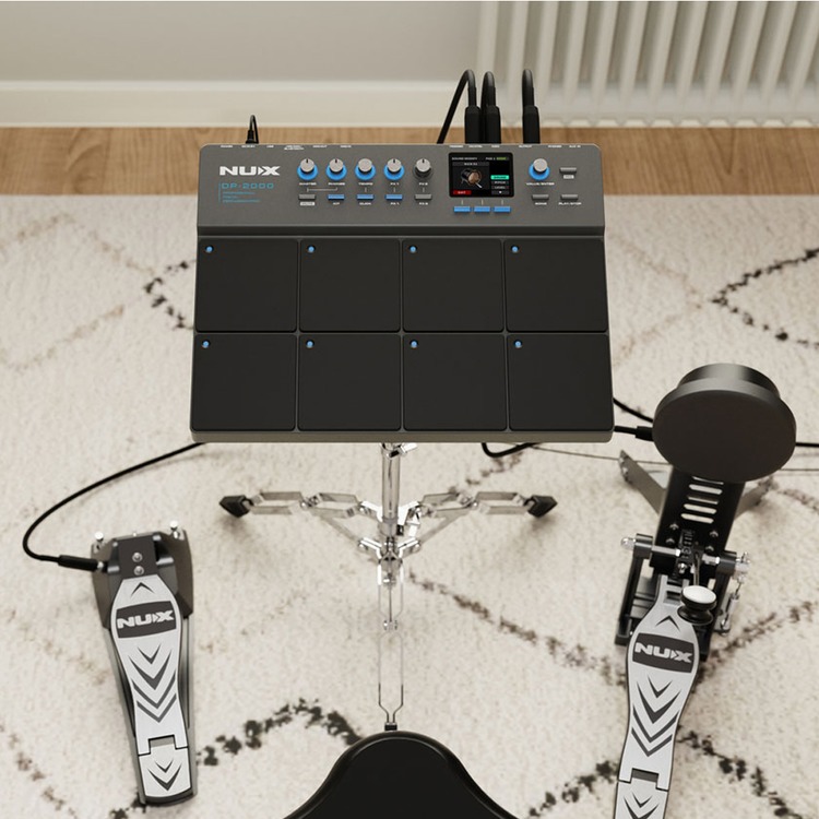 Dedicated MIDI in and out connections mean that the DP-2000 can expand a live playing setup or operate from hardware sequencers and other MIDI controllers. In addition to tuning and dynmamics control, dual-engine DSP effects can be applied to each sound and tailored to suit each sound. If performance space is very limited, inputs for a hi-hat pedal, kick pad and an additional trigger can turn the DP-2000 into a fully playable super-compact e-drum kit.
