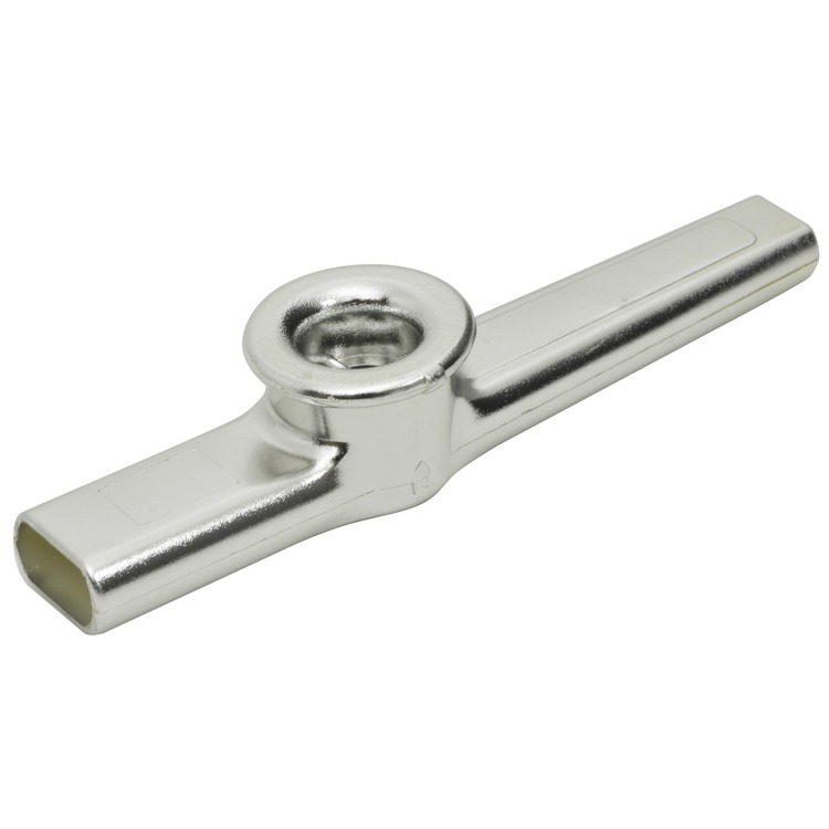 Plastic kazoo for "buzz" vocal accompaniment to music.