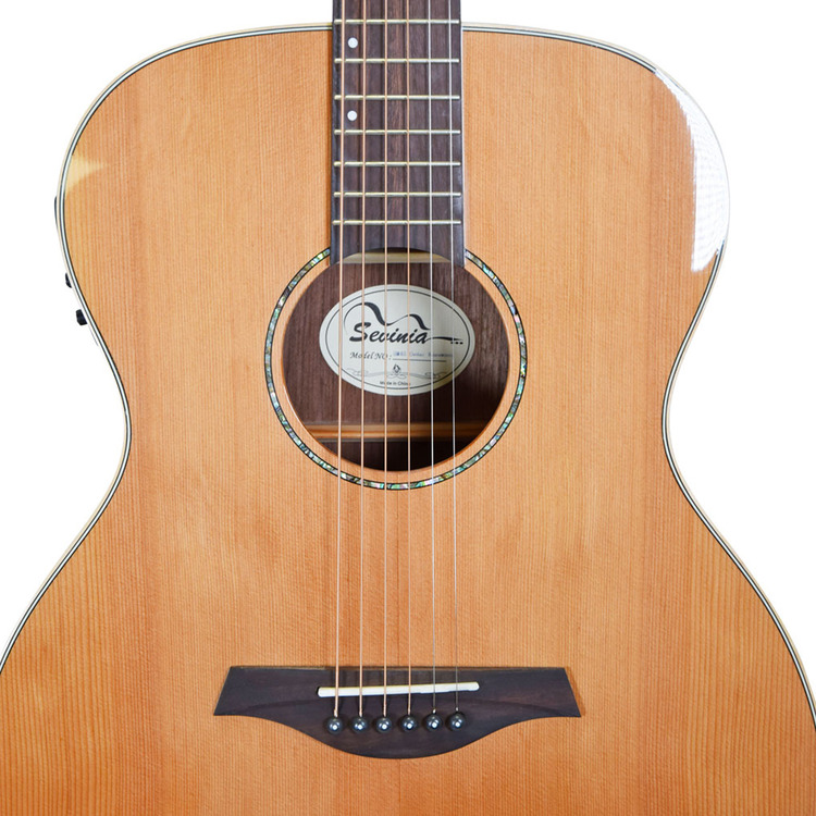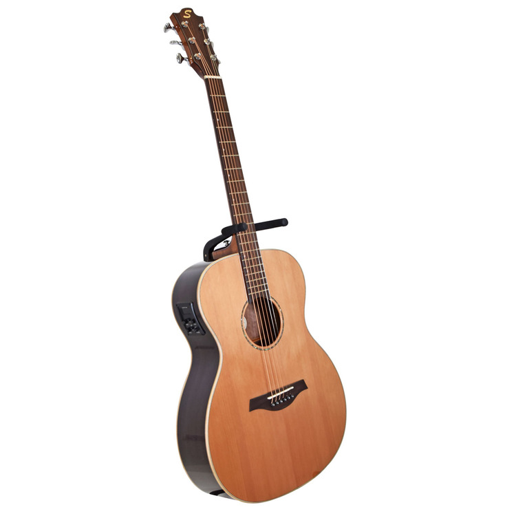 Orchestra Model style electro-acoustic guitar with solid cedar top and high quality rosewood laminate back and sides.