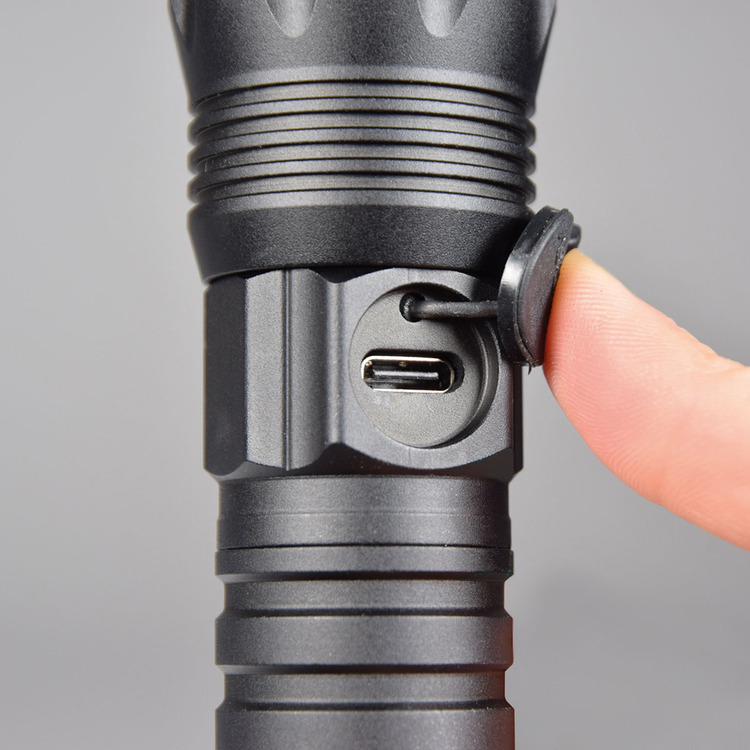 Rugged metal bodied, super bright USB Rechargeable LED Flashlight with 4 lighting modes.