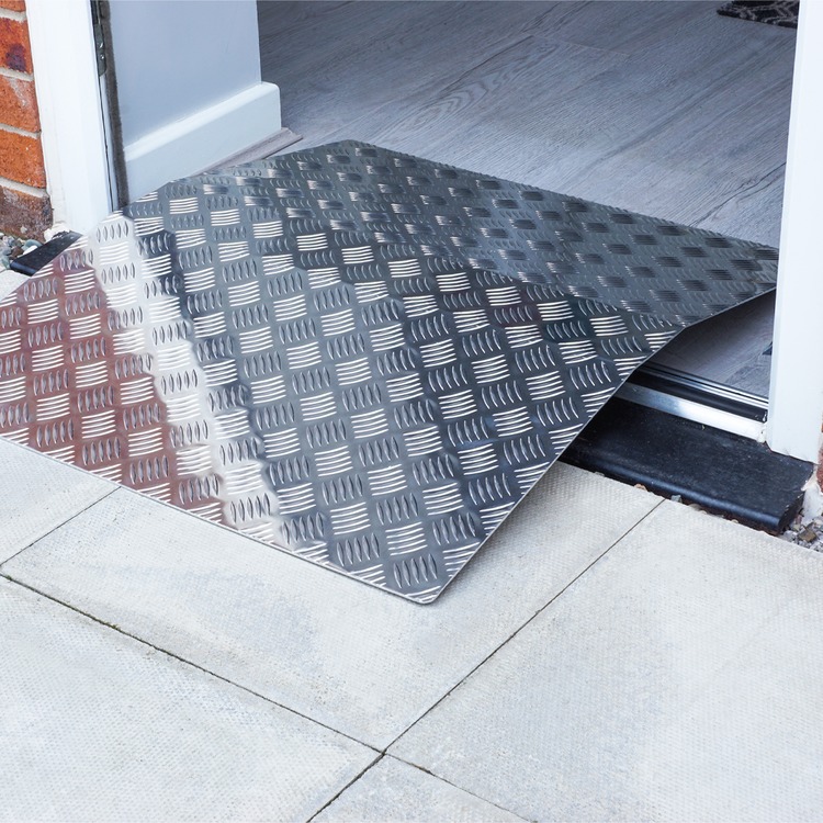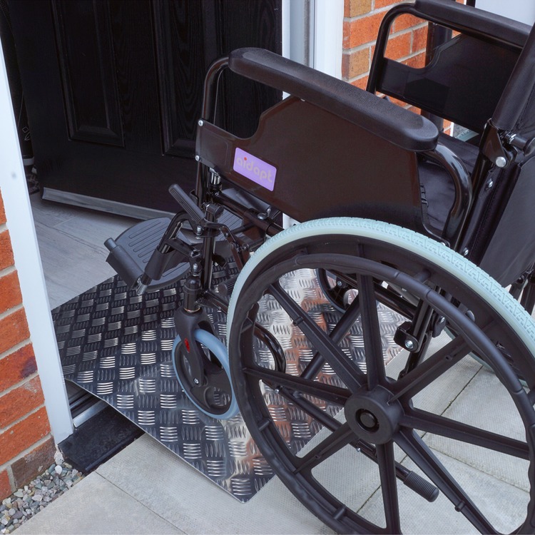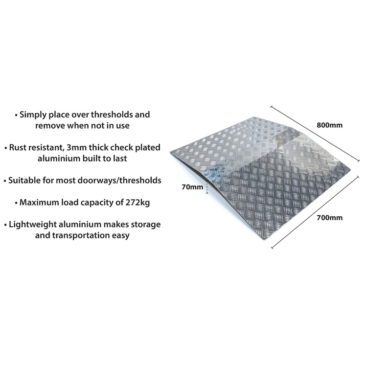 Portable 800mm Long Ramp with a top Height of 100mm lightweight aluminium bridging threshold ramp is a piece of equipment that will help anyone in a wheelchair or scooter easily negotiate a doorway that is not level.
