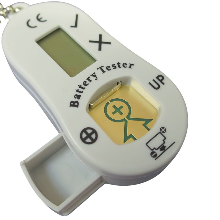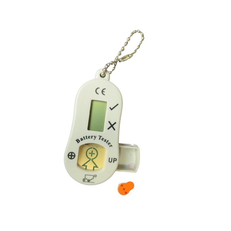 The LCD keyring hearing aid battery tester comes complete with a sliding storage drawer for two spare batteries (batteries not included).