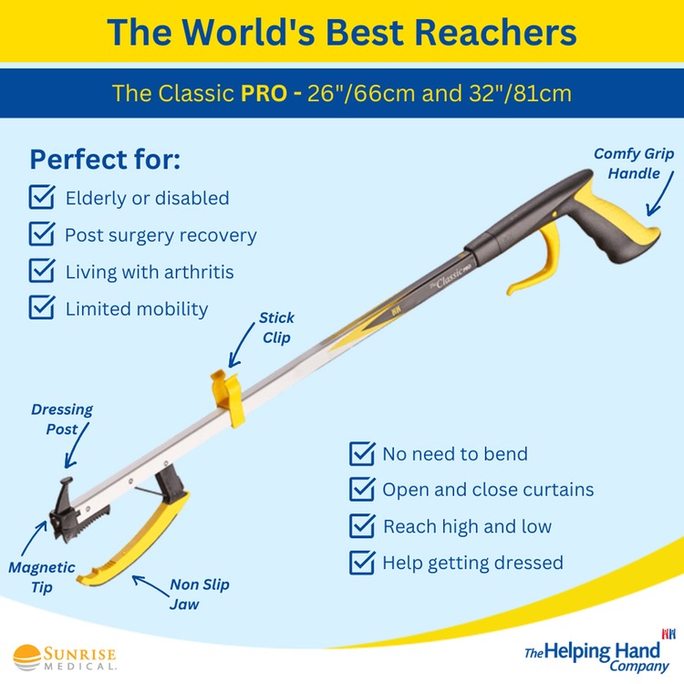 Over 82% of people use the Classic Reacher Pro Longer Length 81cm (32") from The Helping Hand Company for dressing. The Classic PRO is ideal for you to keep living independently in the home. A lot of people also have two, one for upstairs and one for down.