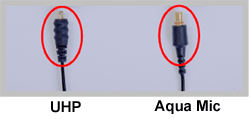3. Cable plug – headpiece specific. The UHP plug has 'ridges' on it while the Aqua Mic plug is smooth.