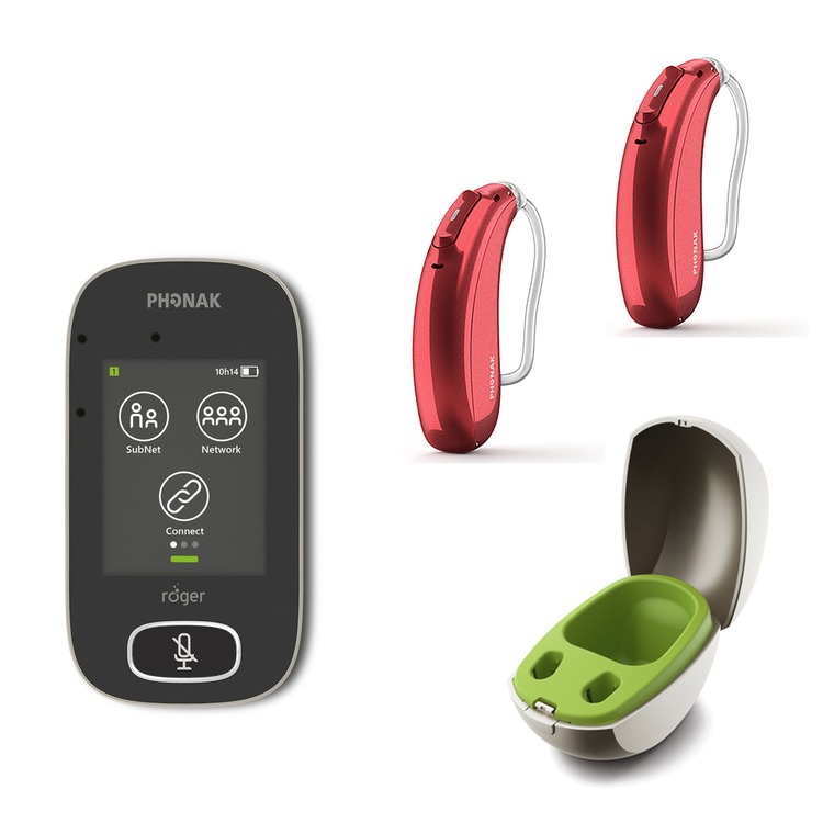 This ready-made bundle includes 2 x Roger Focus II rechargeable receiverS and a black Roger SF Touchscreen Mic transmitter. Also included is a tubing sizing pack and a special voucher. The sizing pack will include 3 sizes of SDS 4.0 SlimTube (00, 0, 1 in left and right) and 2 sizes of SDS 4.0 dome (2 each of small and medium). You will be able to test out both and decide which is the right size for you. Then all you need to do is to email us the voucher code, your details and the sizes you require and we'll send you 2 packs of 5 tubes (left and right) and 10 domes of your chosen size which will last you approx 1 year. In the mean time you'll be able to use the starter tube supplied.