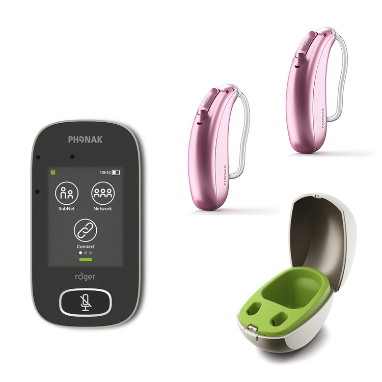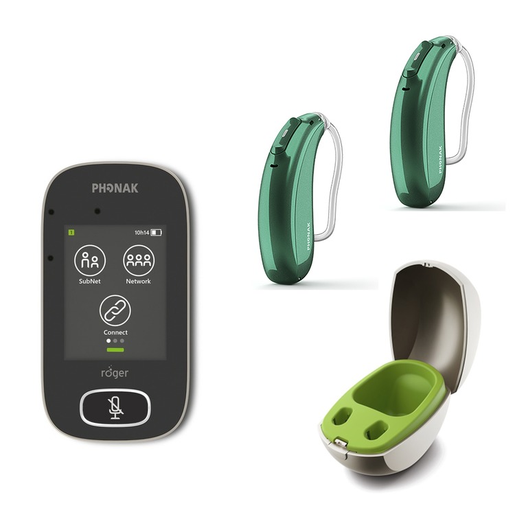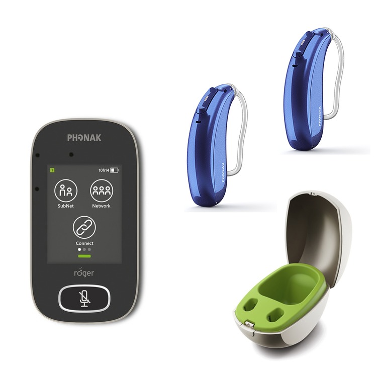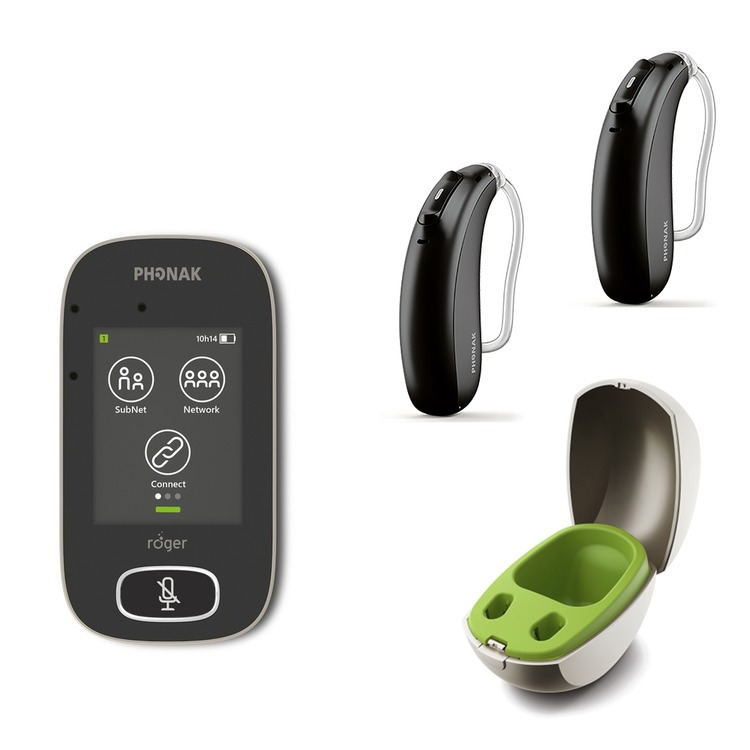 Phonak Roger SF Touchscreen Mic (black) and Two Roger Focus II Rechargeable BTE Receivers Bundle with a choice of 10 Focus colours