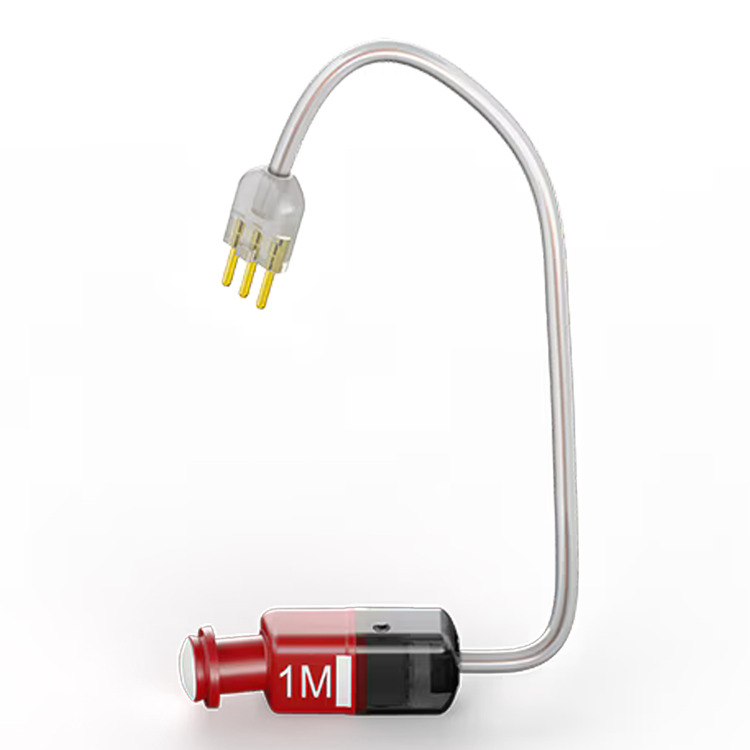 This right SDS 5.0 receiver wire has a red housing, a white rectangle (which is to indicate that a Cerustop wax filter is fitted) and 1M labelling shows 1=size and S=medium power.