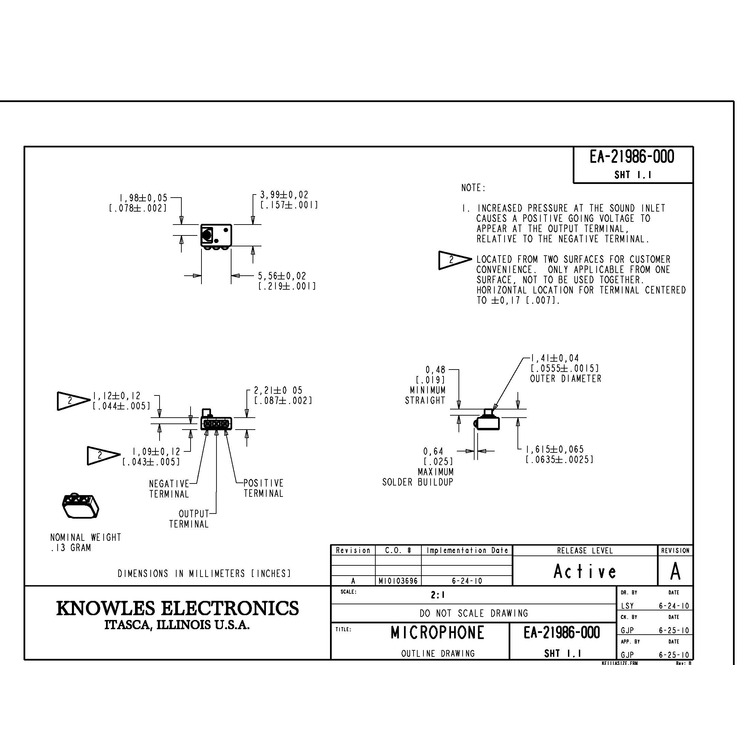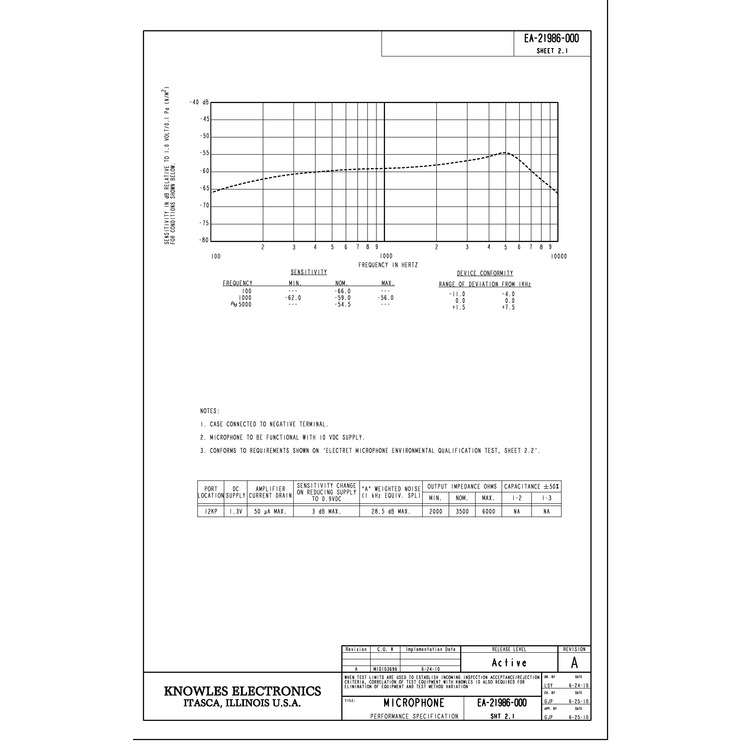 Knowles EA-21986-000 Electret Microphone Capsule - surplus unused production stock