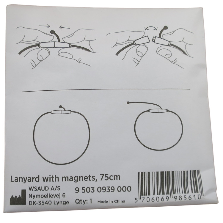 A replacement lanyard for the Widex Sound Assist wireless microphone. The lanyard includes the magnets and is 75cm