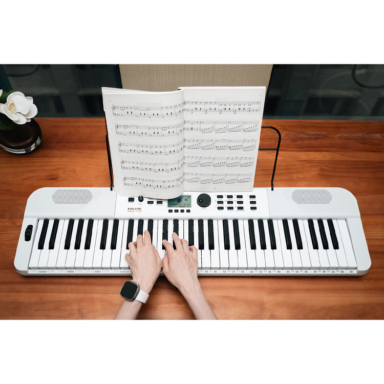 NEK-110 builds on the development of the NEK-100 to add sounds and features to provide a powerful instrument in this minimalistic format. Powered from its internal rechargeable battery or the included 12V adaptor, the NEK-110 increases the sound set to a staggering 700 tones and has 40 different digital effect types, all storable into 9 user memory banks.