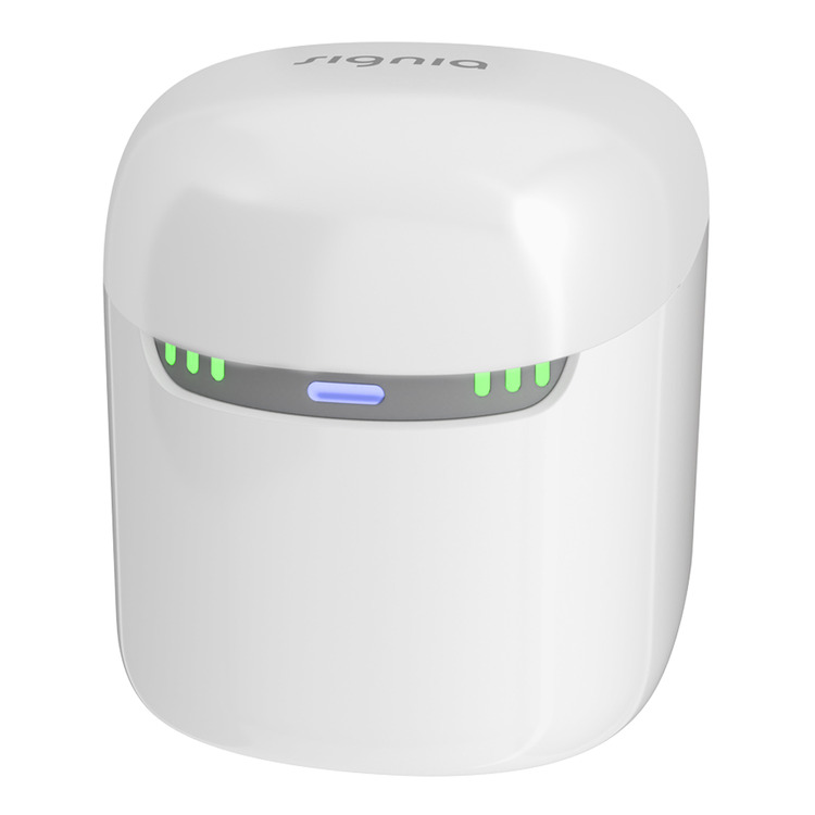 This Signia Pure Dry & Clean Charger is compatible with all Signia Pure Charge & Go AX/IX hearing aids, including CROS & T-coil versions.