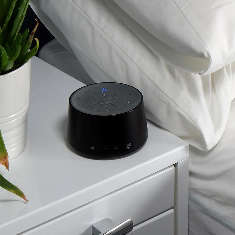 Features 6 soothing sounds - babbling brook, rainstorm, crashing waves, summer night, fan and white noise.