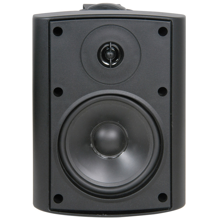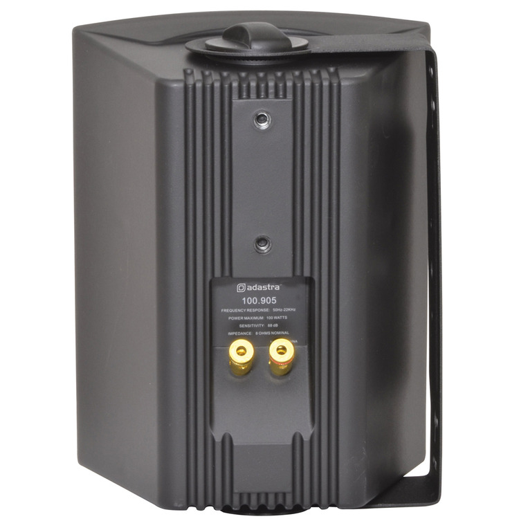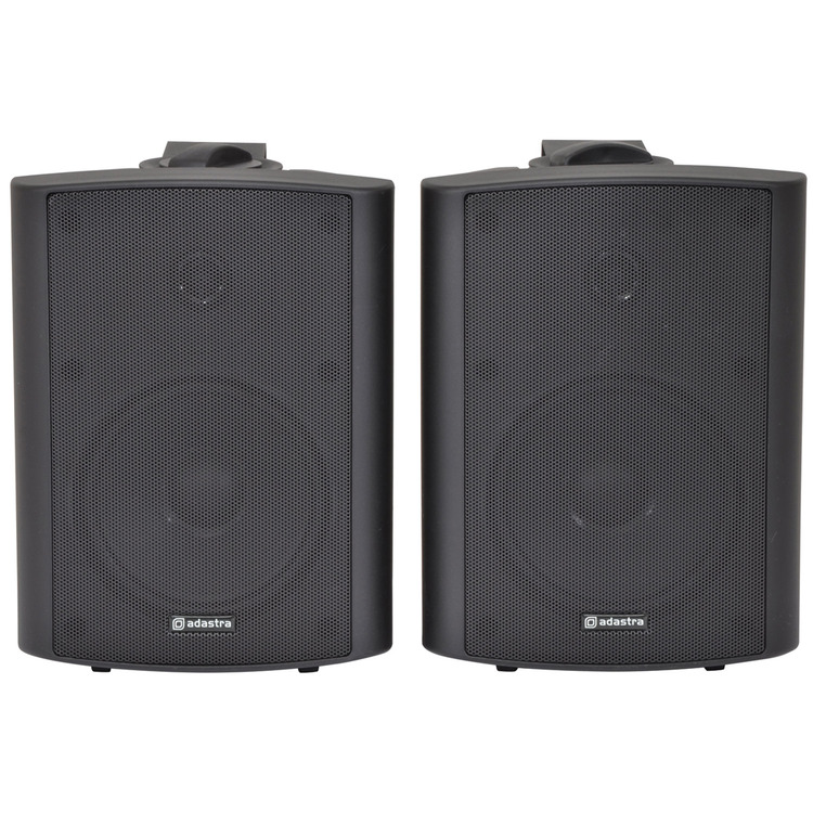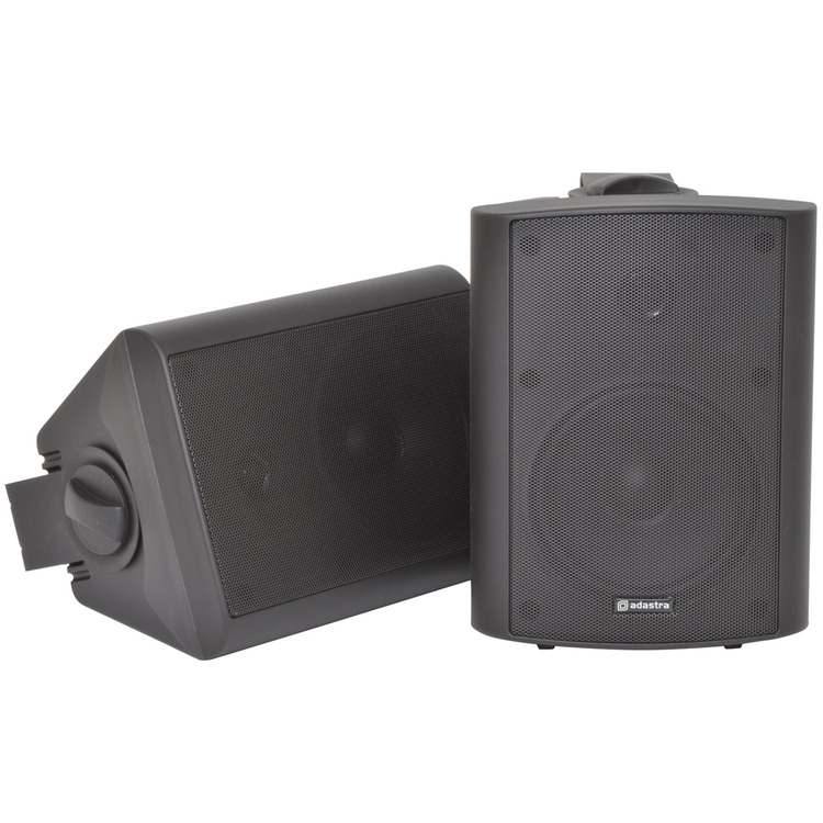 Industry standard black indoor speakers with ABS enclosures and a powder coated steel grille. Wall or ceiling surface mounting via the adjustable steel bracket. Each with standard 8 Ohms impedance and supplied in pairs for connection from a stereo amplifier.